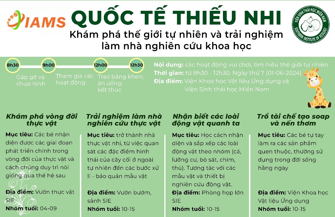 Nhân ngày Quốc tế Thiếu nhi 01/6/2024, Công đoàn và Đoàn Thanh niên Viện Khoa học Vật liệu Ứng dụng đã tổ chức các hoạt động chào mừng dành cho các cháu là con của cán bộ và nhân viên của Viện.